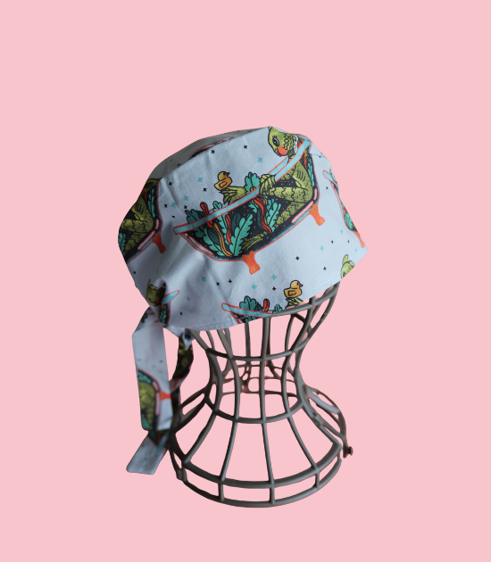 Sur un fond blanc, des illustrations pleines d’humour et de détails graphiques se déploient. Le design est à la fois ludique et soigné, suffisamment audacieux pour casser les codes, tout en restant harmonieux et agréable à porter au travail. Le calot Cédric s’adresse aux vétérinaires, ASV et soignant·es animaliers qui aiment assumer leur singularité, faire sourire leurs collègues et créer du lien avec leur clientèle.