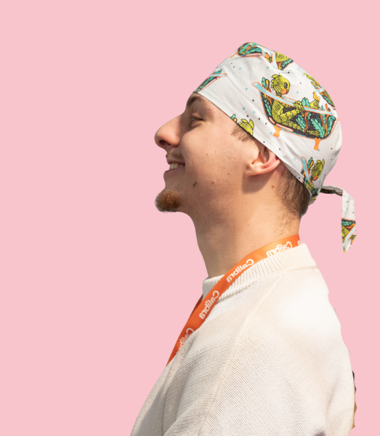 Le calot Cédric ne se contente pas d’être pratique : il agit aussi comme un soutien émotionnel discret. Son motif joyeux et décalé apporte une touche de bonne humeur immédiate. Il attire l’œil, déclenche des sourires, parfois même des conversations et dans un métier exigeant, ces petits moments comptent énormément.